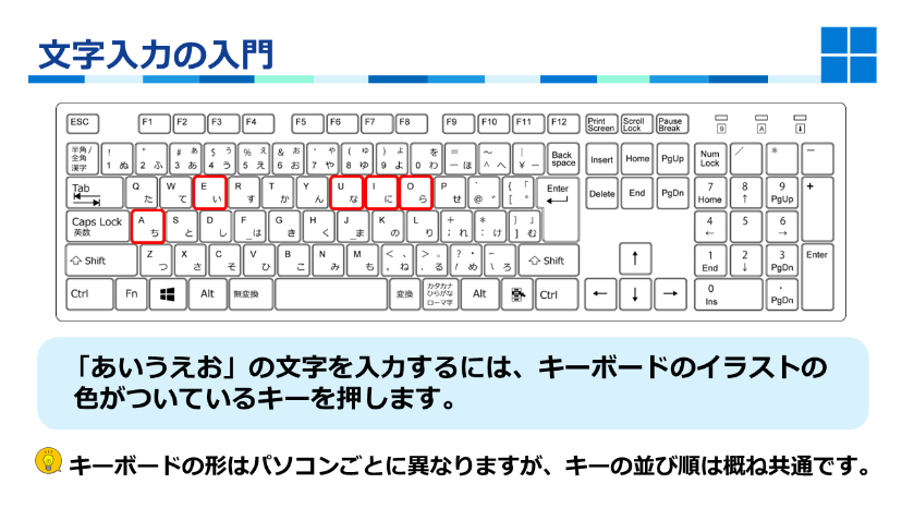 ーパソコンの操作からしっかり学ぶ!ー電源のつけ方からマウスの操作から簡単な文字入力ができるようになります。パソコンの基礎知識を学ぶことでパソコンに慣れることができます