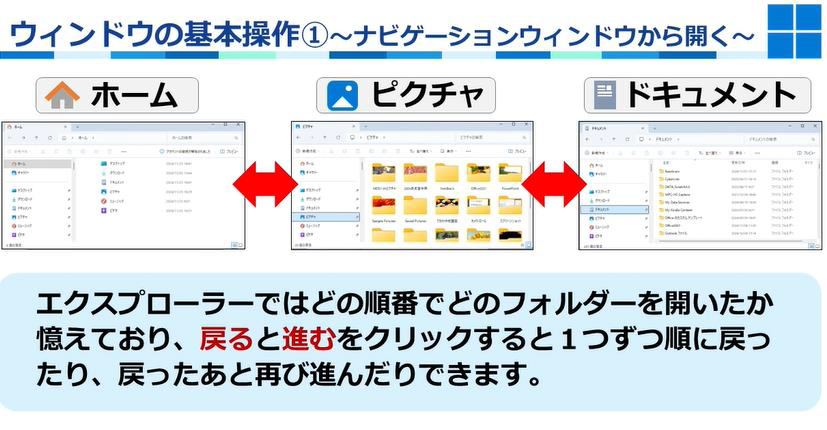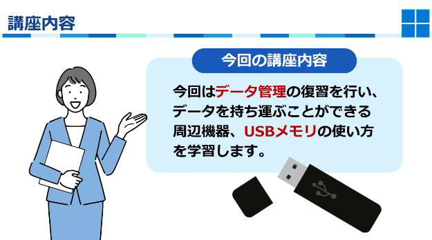 フォルダーの使い方や、データの保存・整理を学ぶことができます。Windowsの様々な機能の解説をしています。